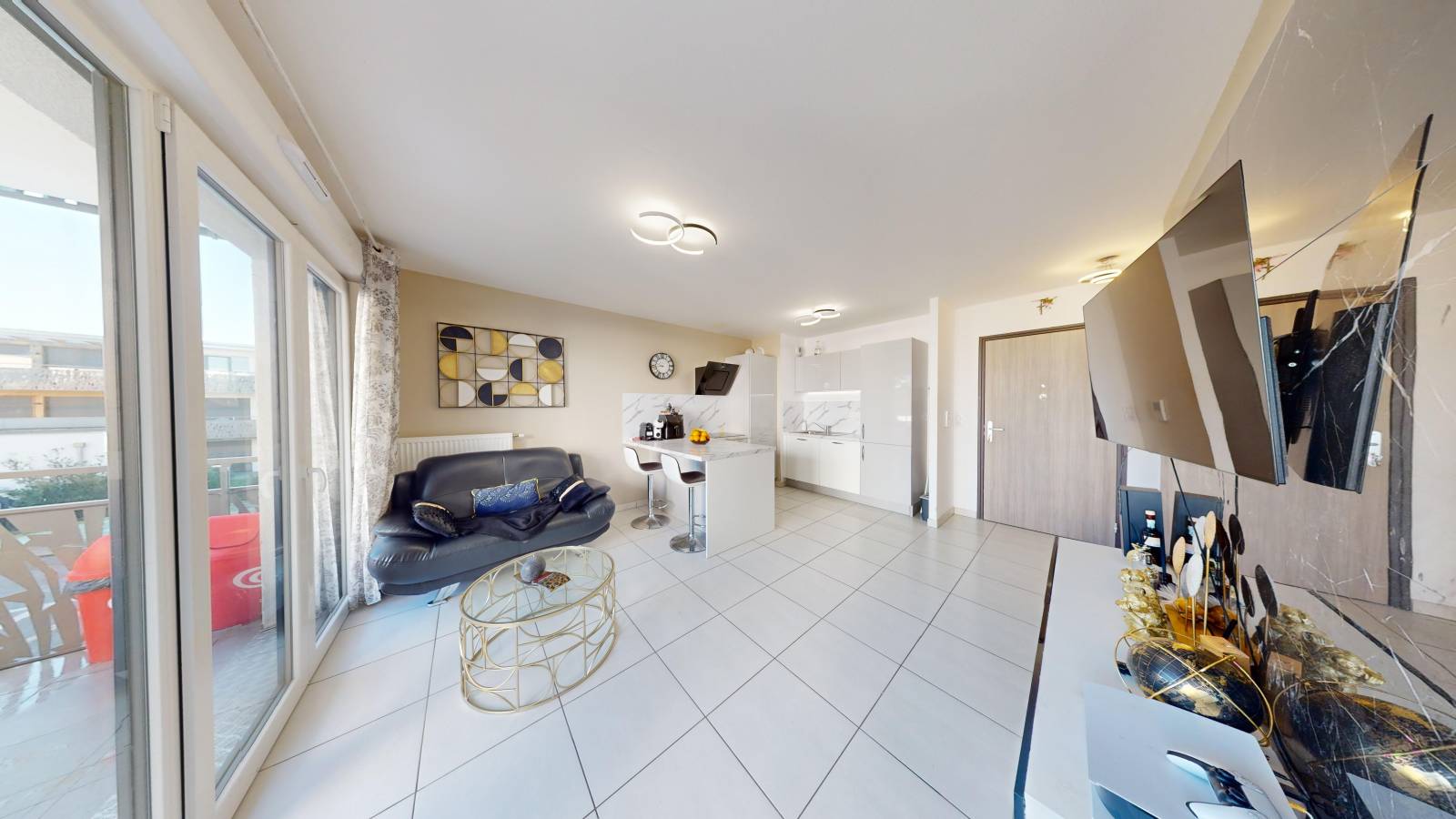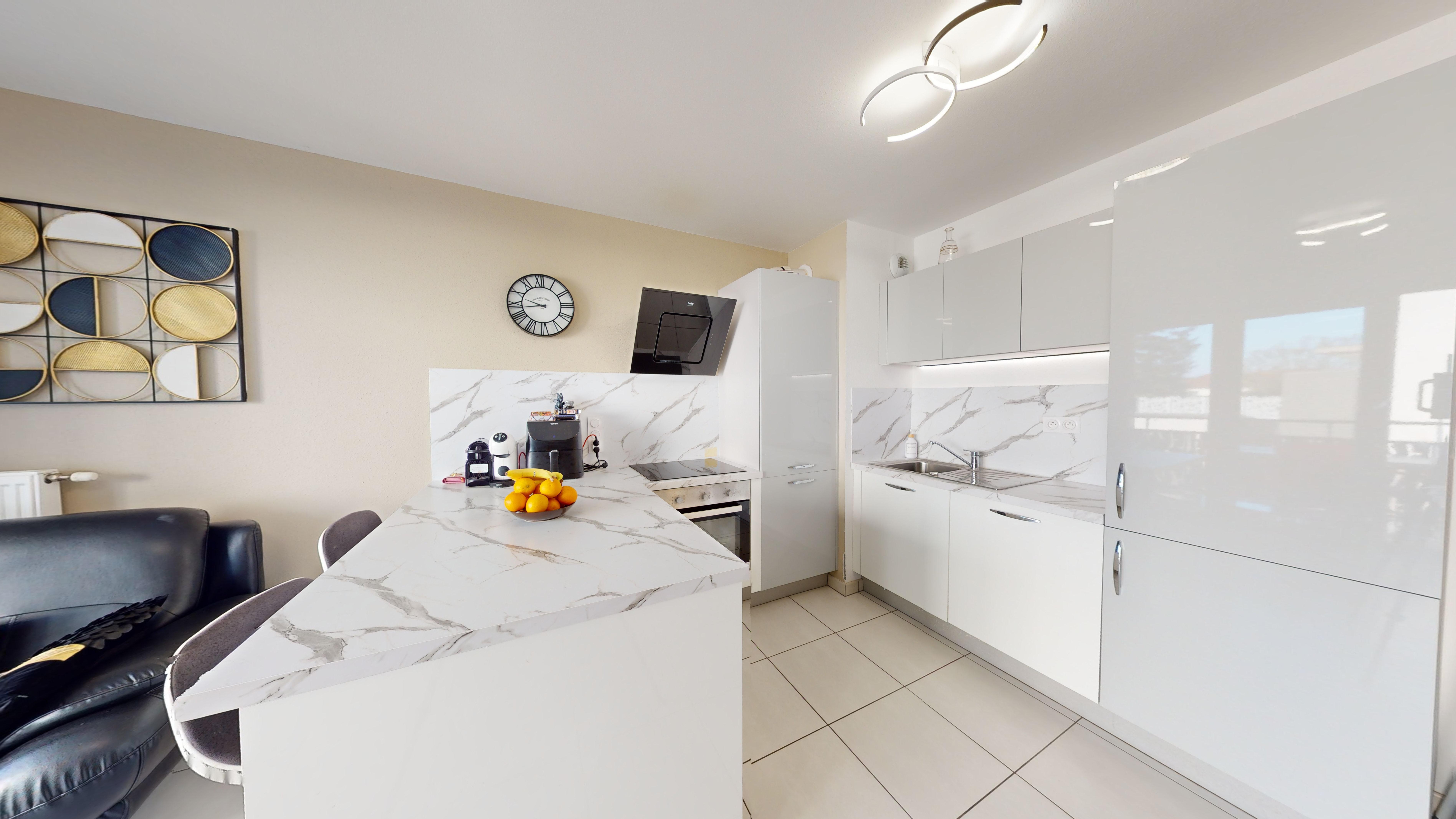L'intérieur de l'appartement se compose d'une cuisine équipée ouverte sur le salon-séjour lumineux et ouvert sur une belle terrasse de 10 m² idéale pour savourer vos moments de détente en plein air, organiser des repas conviviaux ou simplement profiter du soleil.