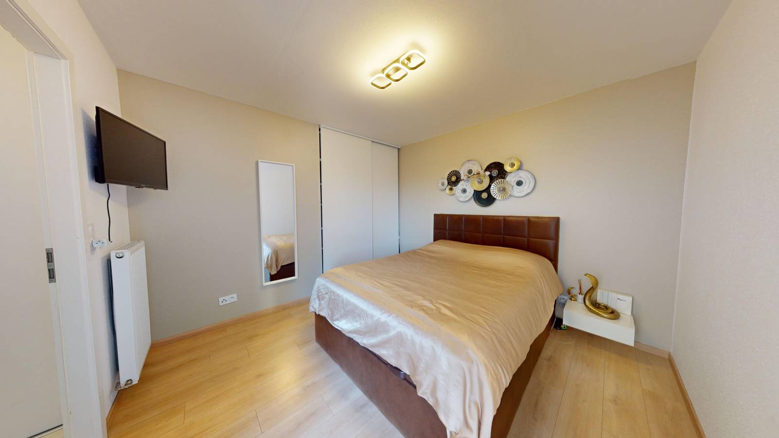 Une chambre confortable, une salle de bain moderne et des toilettes séparées complètent ce bien.