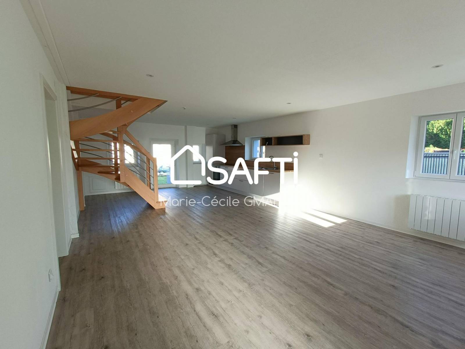 Au rez-de-chaussée, un salon séjour baigné de lumière s'ouvre sur une cuisine dinatoire moderne, créant un espace de vie accueillant et fonctionnel. Une chambre chaleureuse et une salle de bain complètent ce niveau, offrant la possibilité d'un aménagement de plain-pied.