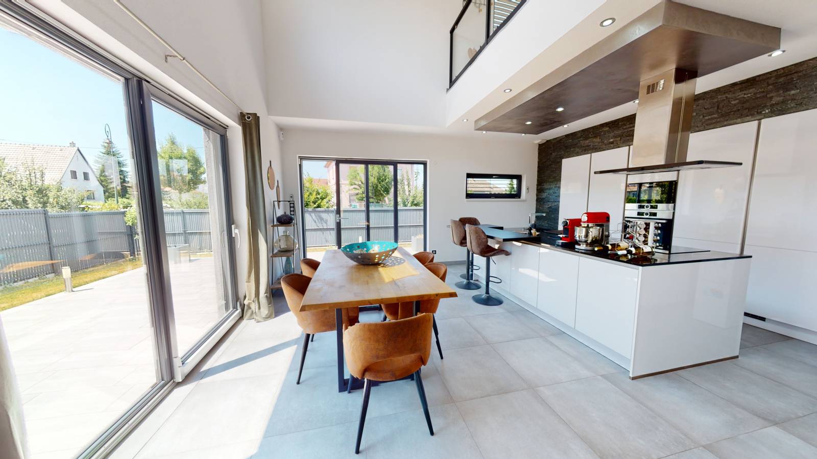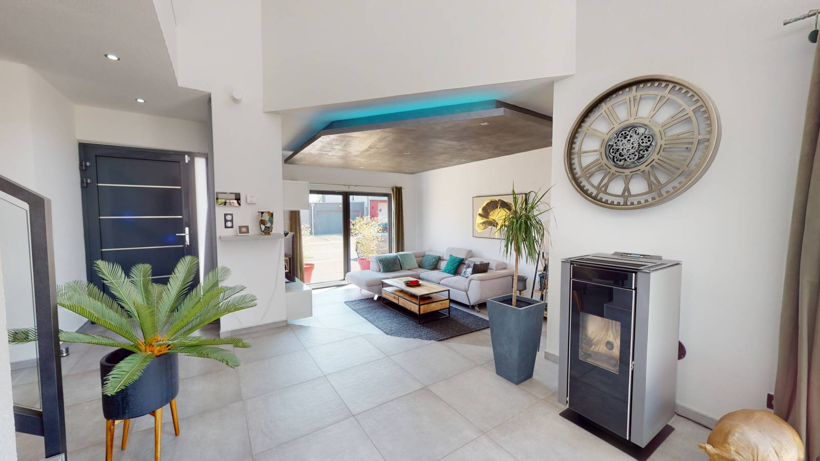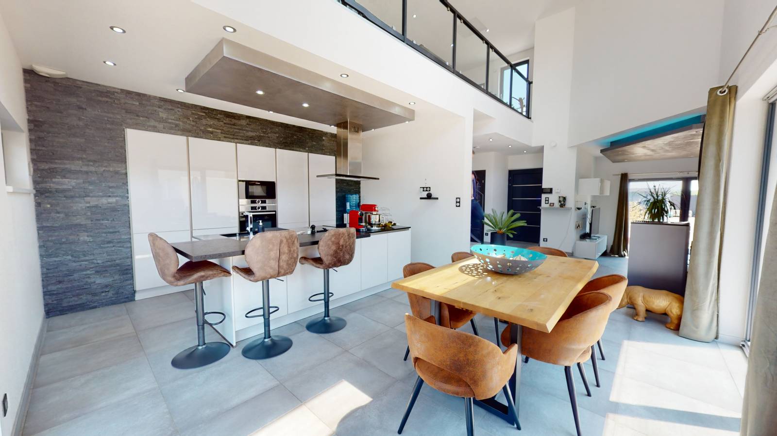 Dès l'entrée, vous serez charmé par un hall avec un placard pratique, donnant sur une cuisine entièrement équipée et ouverte sur un magnifique séjour de 20 m². Ce dernier est baigné de lumière grâce à de grandes baies vitrées qui donnent accès au jardin exposé Sud-ouest. Un poêle à pellets ajoute une touche chaleureuse à cet espace. Le salon de 16 m², légèrement en demi-niveau, crée une atmosphère conviviale. Une suite parentale de 20 m² comprend un dressing et une salle d'eau privative avec une douche à l'italienne. Un WC indépendant complète ce niveau.