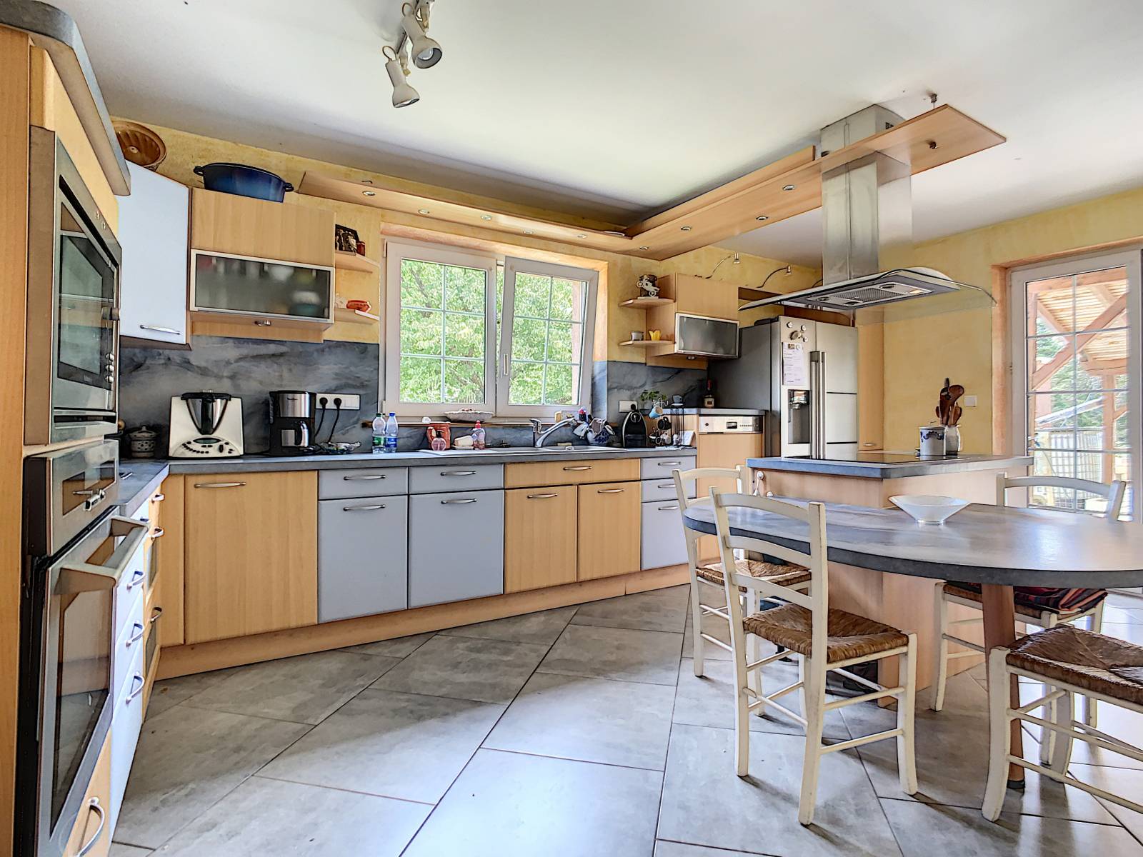 Au RDC, retrouvez une entrée desservant un salon séjour de 60m² avec cheminée triple face, une cuisine équipée fonctionnelle avec son ilot central, une chambre et un WC.