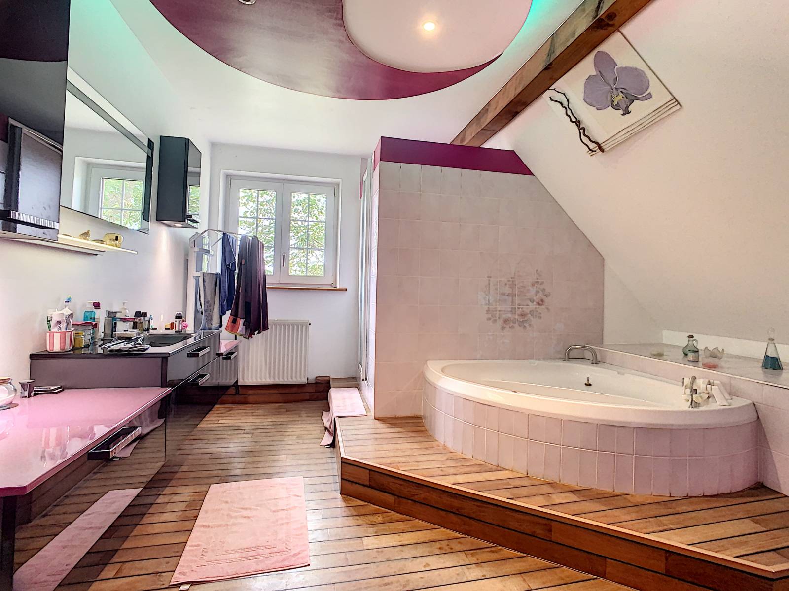 A l'étage, se trouvent 3 chambre dont une chambre de plus 40m², une salle de bain avec douche et baignoire ainsi qu’un WC séparé.